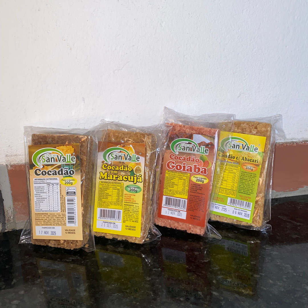 O Cocadão da Engenho Vale Verde é uma deliciosa e versátil iguaria feita com coco fresco de qualidade superior. Disponível nos sabores Natural, Goiaba, Maracujá e Abacaxi, ele oferece uma experiência única a cada mordida, com a suavidade do coco complementada pelas notas frutadas de cada sabor. Sua textura macia e cremosa combina perfeitamente com o toque doce e refrescante das frutas, criando uma verdadeira explosão de sabores. O Cocadão é uma opção irresistível para quem aprecia doces tradicionais com um toque especial.