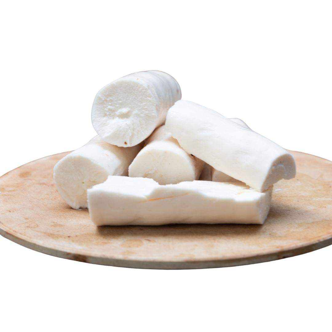 Macaxeira em pedaços, descascada, congelada e embalada a vácuo. Ideal para cozinhar e acompanhar pratos quentes, petiscos assados ou fritos e preparo de bolos, purês, caldos e massas para salgados diversos.